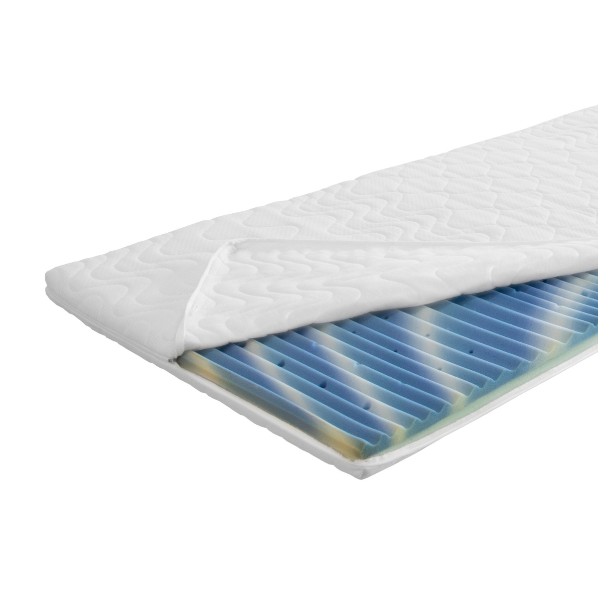 Der FlexiWave Topper ist die ideale Ergänzung für jedes hochwertige Hotelbett. Sein Geheimnis liegt in der durchdachten Materialkombination: Der gewellte, perforierte Hybridschaum passt sich den Körperkonturen perfekt an und sorgt für angenehme Druckentlastung, während die darunterliegende Kaltschaumplatte die notwendige Stützkraft bietet.